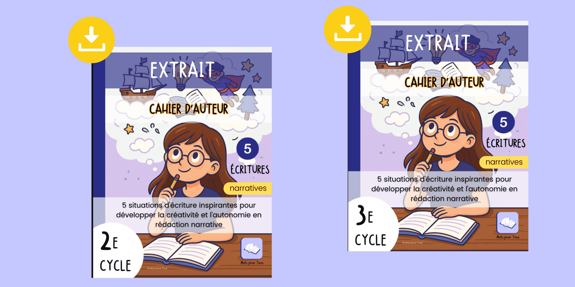 Ces extraits gratuits vous permettent de découvrir notre approche pédagogique, conçue pour développer la créativité, favoriser l’autonomie et structurer l’écriture d’un récit dès le 2e et 3e cycle du primaire.